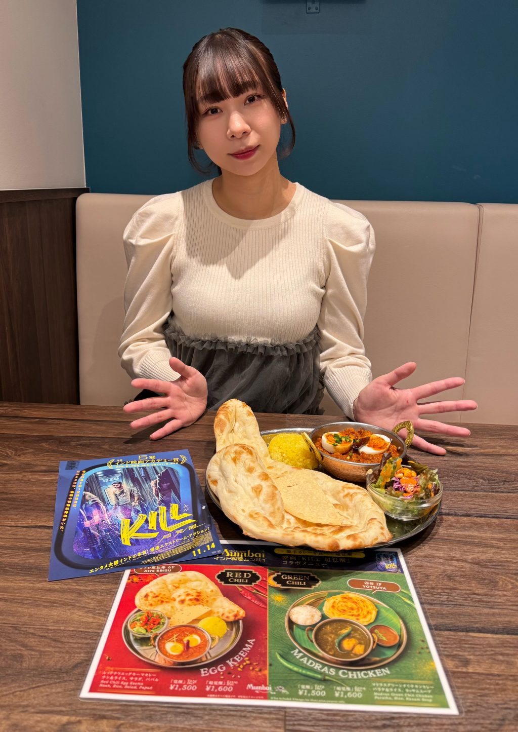 そんな、映画『KILL 超覚醒』がインド料理店「ムンバイ」と激アツコラボ中!「激辛カレーを食べて超覚醒」と題し、激辛メニューを恵比寿店と四谷店の2店舗で展開中です!