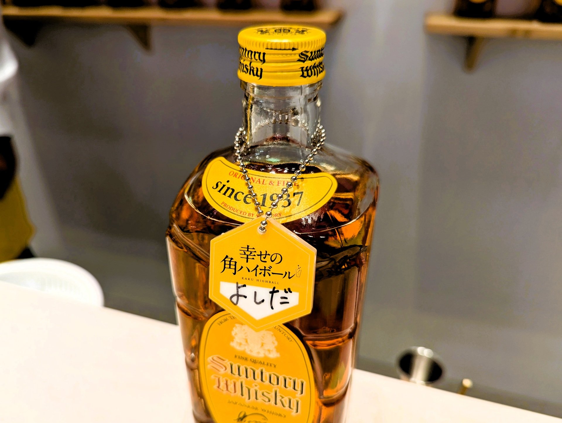 ▲自分の名前が書かれたネームタグ付きのキープボトルで常連さん気分アップ。