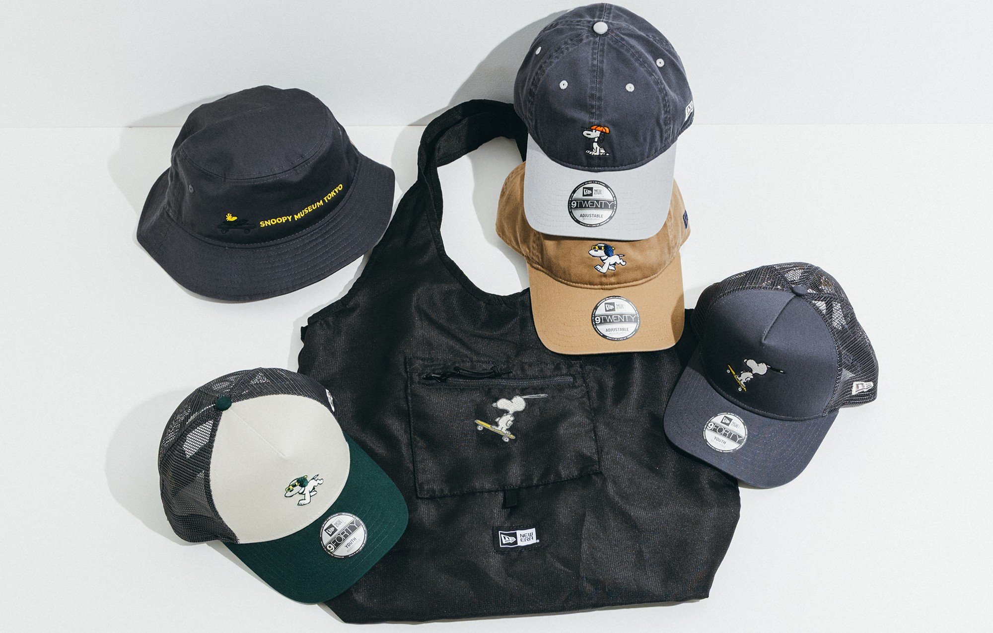 「NEW ERA」とのコラボではキャップやバケットハットが登場。スヌーピー刺繍が効いた大人かわいいデザインで、コーデのアクセントにぴったり。