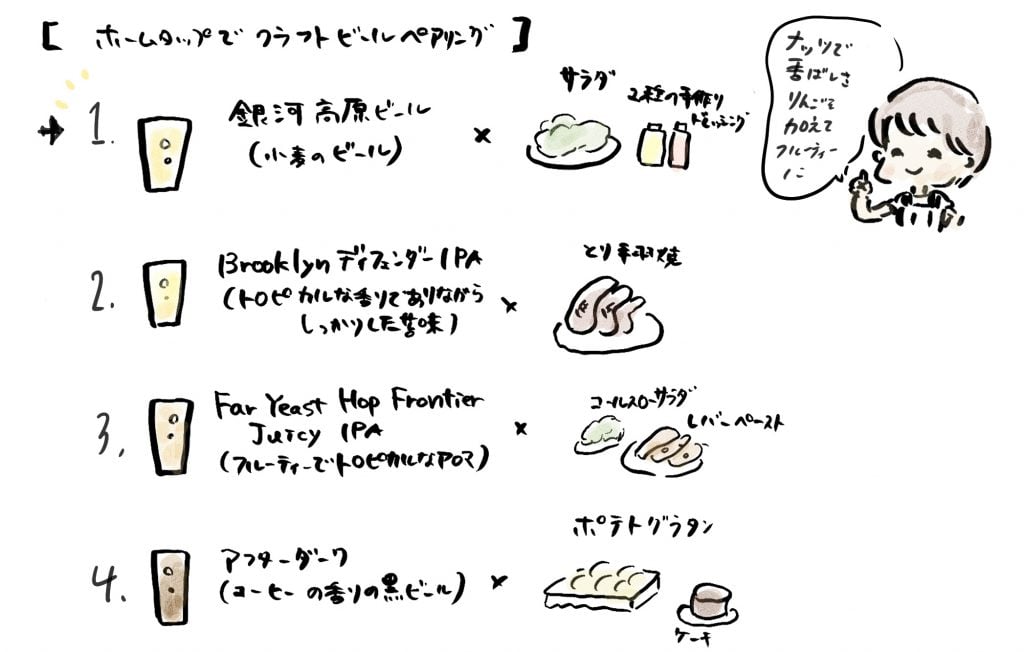 この日に堪能したクラフトビールは4種。さてそれぞれに合うホムパ料理とは……?